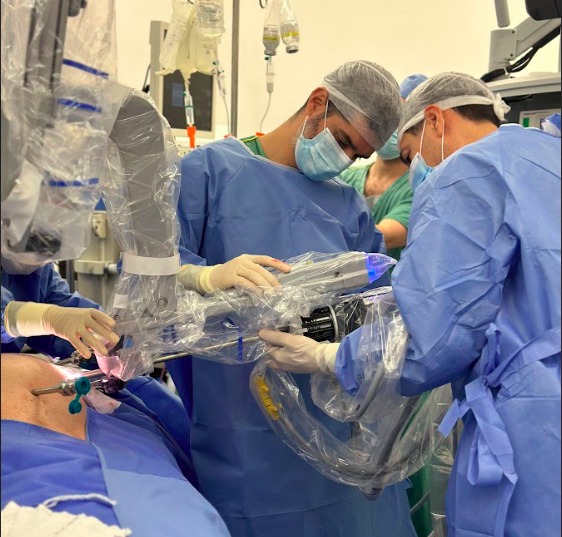 plataforma robótica da Vinci chegou no Brasil há 10 anos, mas apenas mais recentemente tem ganhado mais popularidade. Trata-se de um equipamento que auxilia o especialista na realização de procedimentos minimamente invasivos. É composto por um console no qual o cirurgião pode até ficar à distância, sentado, numa posição ergonomicamente favorável imerso em uma tela 3D de alta definição que reproduz a imagem de dentro do corpo do paciente. Deste console é feito o controle dos braços mecânicos do robô, que reproduz com toda delicadeza e destreza todos os movimentos realizados pelo especialista. Conectados ao paciente ficam os braços mecânicos com os instrumentos cirúrgicos e a câmera..